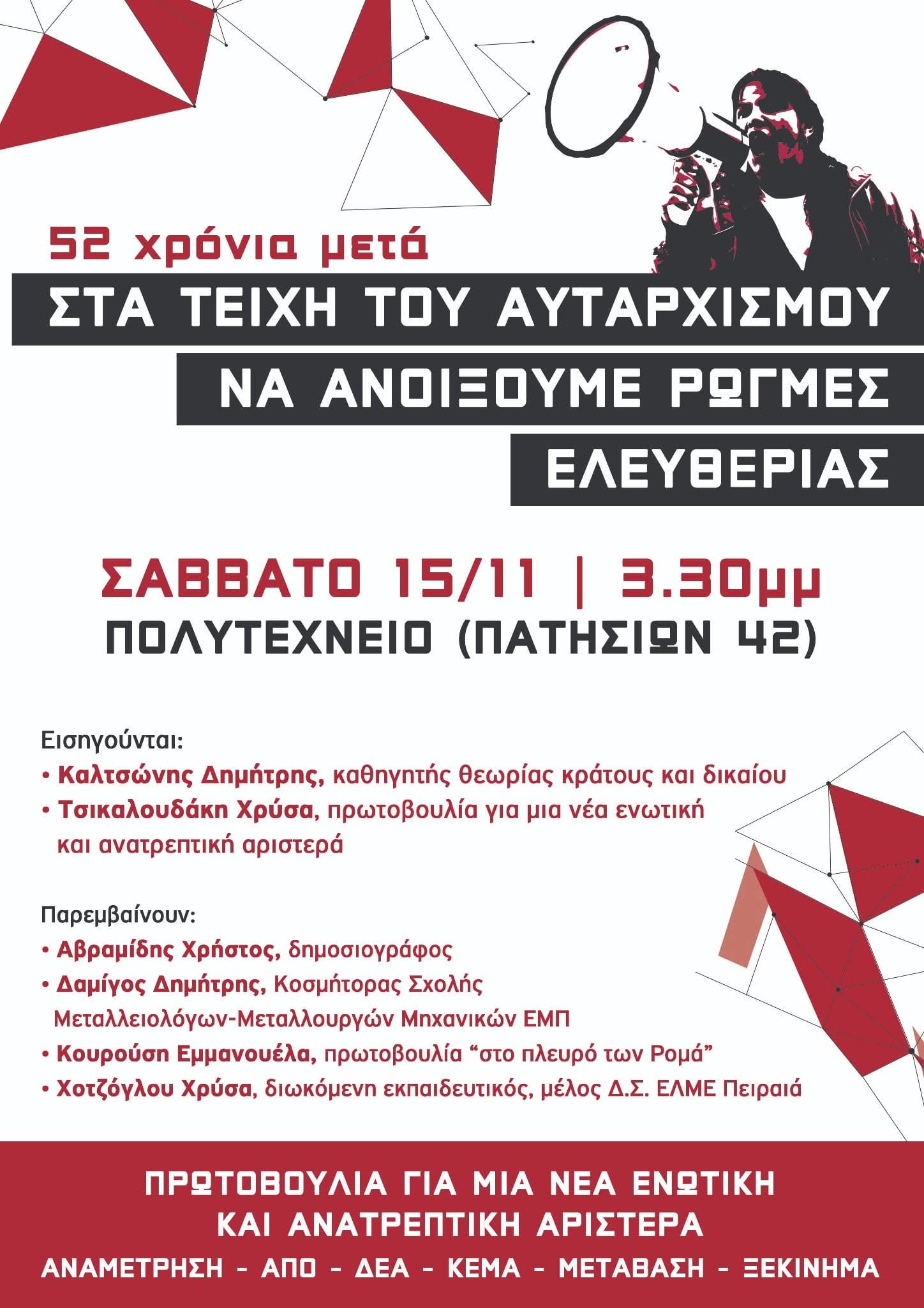 52 Χρόνια μετά | Στα τείχη του Αυταρχισμού να ανοίξουμε Ρωγμές Ελευθερίας
