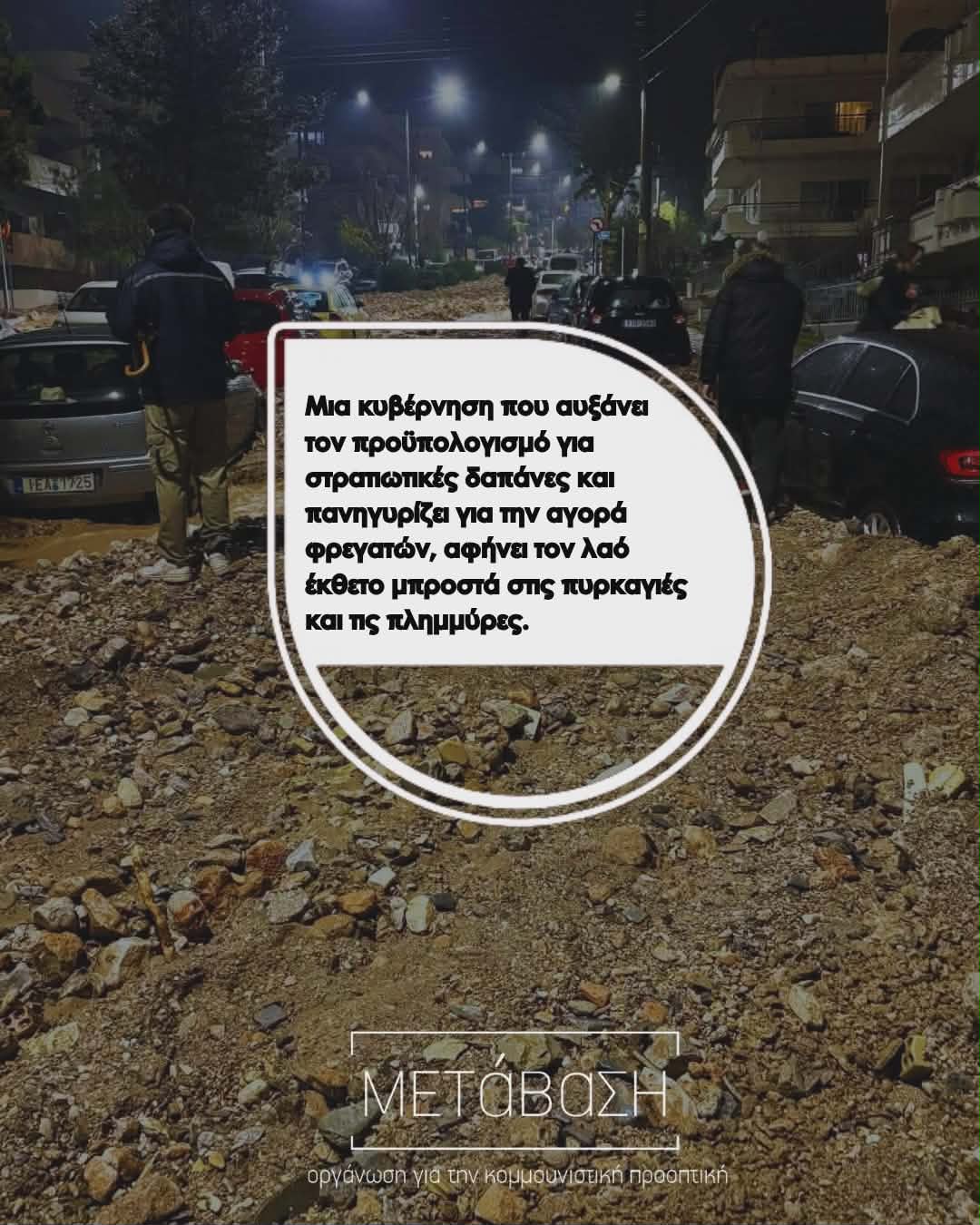 Μια κυβέρνηση που αυξάνει τον προϋπολογισμό για στρατιωτικές δαπάνες και πανηγυρίζει για την αγορά φρεγατών, αφήνει τον λαό έκθετο μπροστά στις πυρκαγιές και τις πλημμύρες.